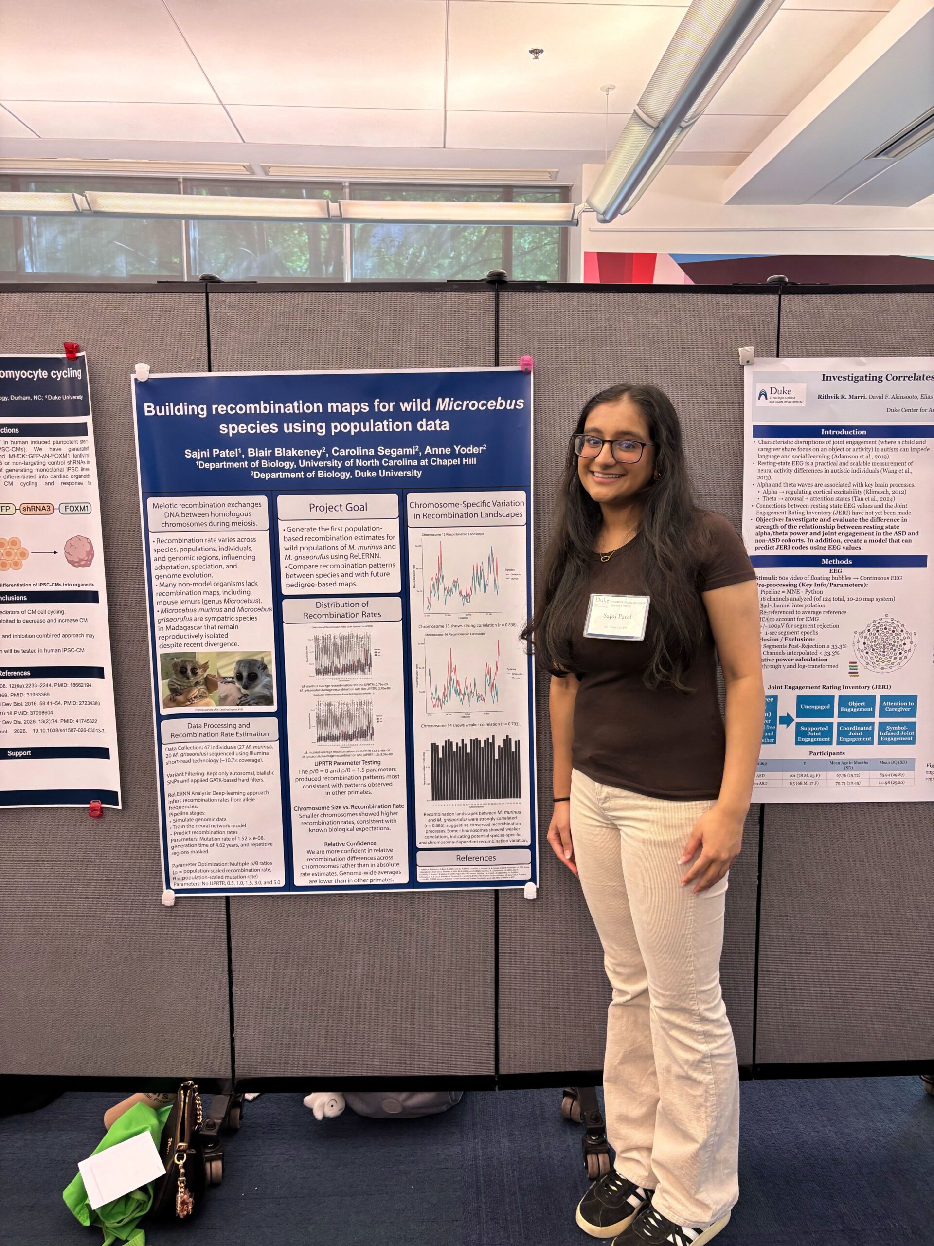 Sajni did a wonderful job presenting her poster entitled “Building recombination maps for wild Microcebus species using population data.” Caro, Blair, Anne, and Maia cheered her on! Congrats on a great end to the semester, Sajni!